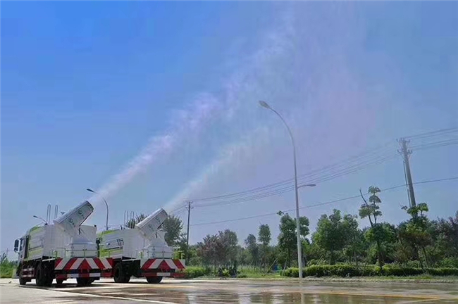 罐體容積10方,噴霧機最大射程可達80米,可選裝30-80米噴霧機,噴霧流量1m3/h(節水可調),水平旋轉360度可調,俯仰角度可調為-10°-45°,覆蓋面廣,水平旋轉180度,控制范圍大;霧粒為30-200微米,流量可根據客戶要求調節;可實現遠程遙控。灑水寬度可達14米,高壓水槍垂直射程近30米,雙向側噴寬度20余米。