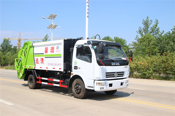 東風(fēng)8方垃圾壓縮轉(zhuǎn)運(yùn)車,由廂體、裝料機(jī)構(gòu)、壓縮機(jī)構(gòu)、卸料機(jī)構(gòu)、油泵、油缸、控制閥等組成的液壓機(jī)構(gòu)組成。廂體材料為優(yōu)質(zhì)碳鋼,邊4mm底4mm,有效廂體容積:8立方,裝料機(jī)構(gòu)由支架,連桿機(jī)構(gòu),凸輪,掛鉤等組成。在油缸作用下,將垃圾桶內(nèi)的垃圾自動(dòng)翻轉(zhuǎn)倒入料斗內(nèi)。