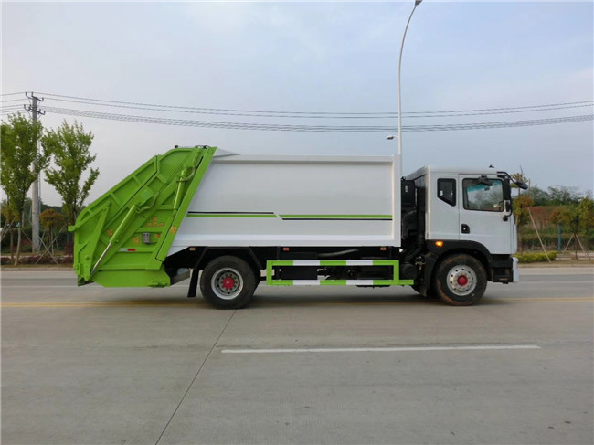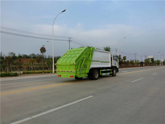 壓縮垃圾車上裝配置:新款平面弧形廂體,廂體材料為武鋼優(yōu)質(zhì)碳鋼,有效壓縮容積10-12立方,PLC一鍵操作控制,手電一體操作模式,兩側(cè)雙電控,帶駕駛室內(nèi)操作,底板支撐加強(qiáng),雙向壓縮,開放式易清潔污水箱。壓縮式垃圾車采用機(jī)電液一體化技術(shù),借助機(jī)、電、液聯(lián)合自動(dòng)控制系統(tǒng)、電腦控制、手動(dòng)操作系統(tǒng),通過(guò)填裝器和推鏟等專用裝置,實(shí)現(xiàn)垃圾倒入、壓碎或壓扁、強(qiáng)力裝填,把垃圾擠入車廂并壓實(shí)和推卸,污水全部進(jìn)入污水收集箱,解決了垃圾運(yùn)輸過(guò)程中的二次污染的問(wèn)題。壓縮式垃圾車具有自動(dòng)反復(fù)壓縮以及蠕動(dòng)壓縮功能,壓縮比高、密封性好、裝載量大﹑操作方便、環(huán)保性好﹑整車?yán)霉β矢叩葍?yōu)點(diǎn)。作業(yè)自動(dòng)化,垃圾收集方式簡(jiǎn)便、高效。后翻轉(zhuǎn)機(jī)構(gòu)選裝:1、掛塑料桶式翻轉(zhuǎn)機(jī)構(gòu);2、掛鐵桶式翻轉(zhuǎn)機(jī)構(gòu);3、擺臂式翻轉(zhuǎn)機(jī)構(gòu); 4、簸箕斗式翻轉(zhuǎn)機(jī)構(gòu)。壓縮垃圾車后部尾部可選裝配置帶筒(或斗)的翻轉(zhuǎn)機(jī)構(gòu),吊裝多容量的桶,240L塑料桶、300L鐵桶、800L小斗、360L塑料桶等。