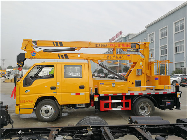 江鈴順達(dá)12米高空作業(yè)車:采用江鈴115馬力,雙排駕駛室,五檔變速箱,7.00R16鋼絲胎,帶方向助力動(dòng)力轉(zhuǎn)向,軸距3360,帶排氣制動(dòng),ABS,作業(yè)高度16米,工作斗限載200kg,液壓360度全回轉(zhuǎn),三節(jié)折疊臂,單液壓舉升缸,雙向平衡閥,電控操作舉升臂,1噸可伸縮吊鉤可伸縮1米,四支液壓油缸可調(diào)試支腿,帶雙向液壓鎖。