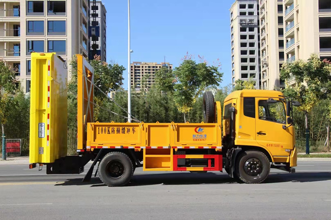 東風天錦防撞緩沖車底盤配置:東風商用駕駛室。康明斯185馬力,國六柴油發(fā)動機,軸距3950,8檔變速箱,電動玻璃,方向助力,原廠空調(diào)。