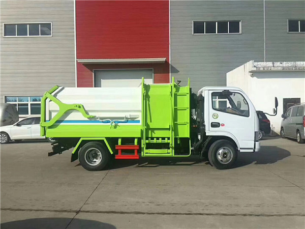 側裝壓縮垃圾車是在掛桶式垃圾車(自裝卸式垃圾車)的基礎上改進而成的,相對掛桶式垃圾車,主要是改進了箱體結構,改進了后門密封和鎖緊的方式,增加了內置壓縮推鏟,加裝了污水箱等。
