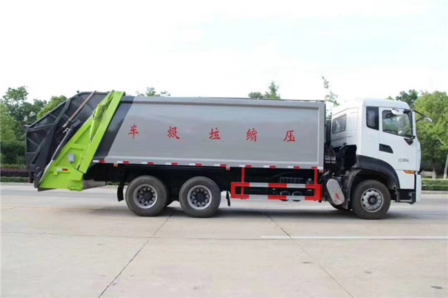 國六大型東風天龍后雙橋20方壓縮式垃圾車整車說明:東風天龍后雙橋壓縮式垃圾車,新式KL豪華駕駛室,康明斯290馬力發動機,4350+1350軸距,新式弧形箱體(有效容積約20立方米),全部采用Q345錳鋼板,新式可破碎刮板,標配雙聯泵雙聯閥背壓閥油路過濾器,掛桶翻轉機構,可選裝氣控后蓋式,三角斗式,全密封斗式,擺臂式,無線遙控器,倒車影像。